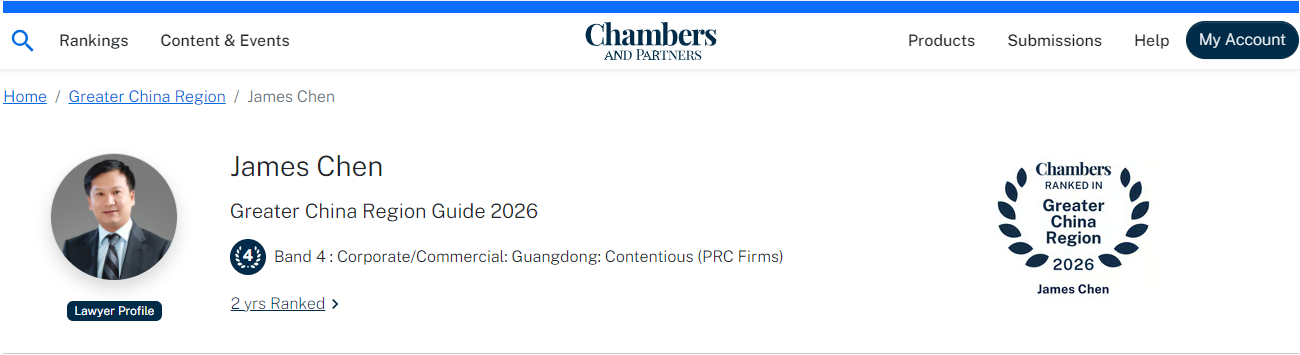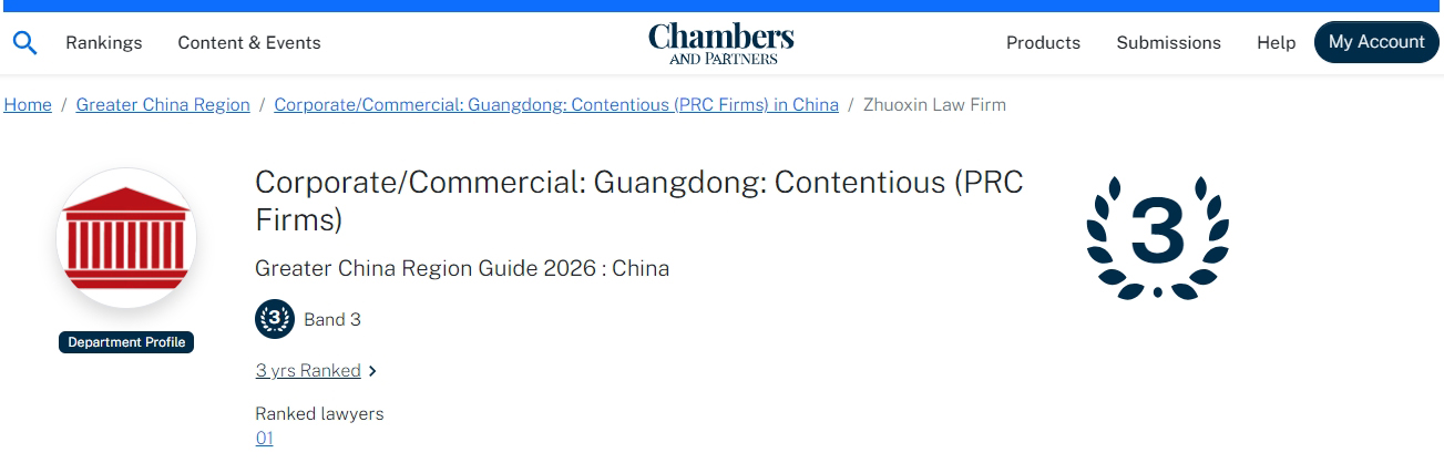 2026年1月15日,国际权威法律评级机构钱伯斯(Chambers & Partners)公布《钱伯斯大中华区指南2026》(Chambers Greater China Region Guide 2026)榜单,卓信律师事务所持续收获市场认可,再次荣登“大中华区公司/商事区域榜单”,卓信主任陈健斌律师再次荣登钱伯斯指南该领域争议解决推荐榜单,合伙人谢伟坤律师上榜劳动法领域推荐榜单。